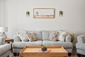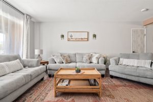 - Open-concept living and dining areas with warm, earthy décor